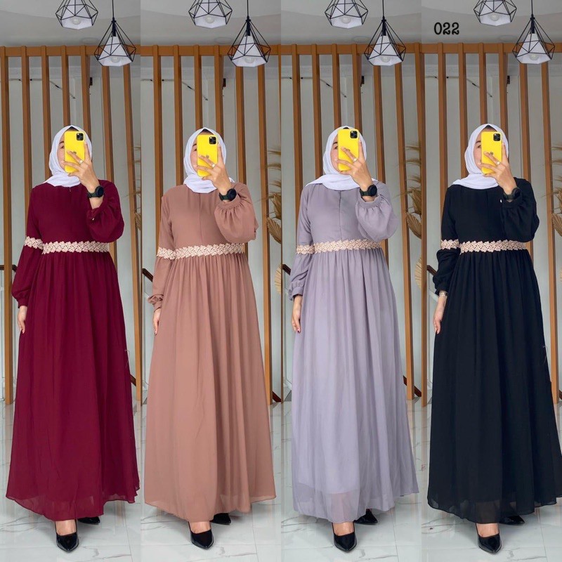 Baju gamis renda ceruty babydoll full puring | gamis banyak varian warna.